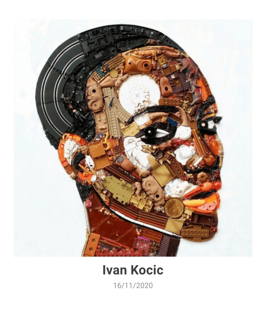 IVAN KOCIC is an Artist who’s work portrayed portrait through medium of assemblage using recycled children toys, which aim to promote contemporary art through process of recycling waste and reproducing it for Visual Art works.